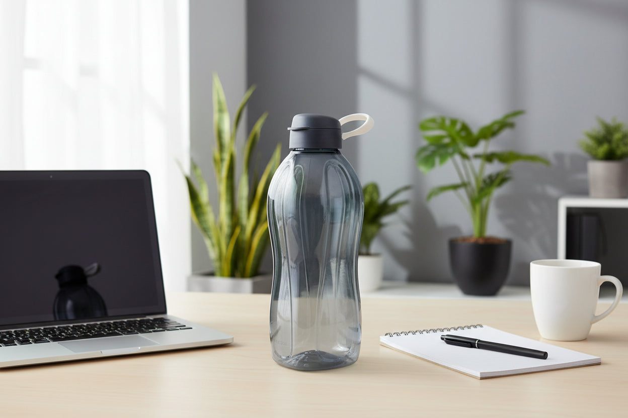 La Eco Botella de 2 litros con asa ofrece una forma sostenible de beber agua para llevar. Su forma se adapta a la puerta del refrigerador y es cómoda de sostener. Además, el asa facilita verter agua en un vaso o rellenar botellas ecológicas más pequeñas.