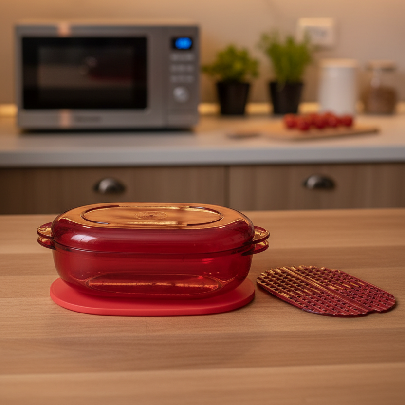 El Microplus Oval de 1.5L es la solución integral para preparar, cocinar, almacenar y calentar. Ideal para cocinar patatas, verduras, frutas, pescado y carnes, preparar sopas, salsas y cremas, derretir mantequilla y chocolate, y hornear en poco tiempo.