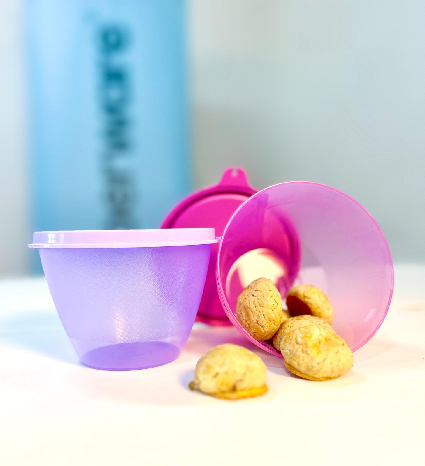 Redondo y translúcido, con ventana transparente para identificar fácilmente el contenido.